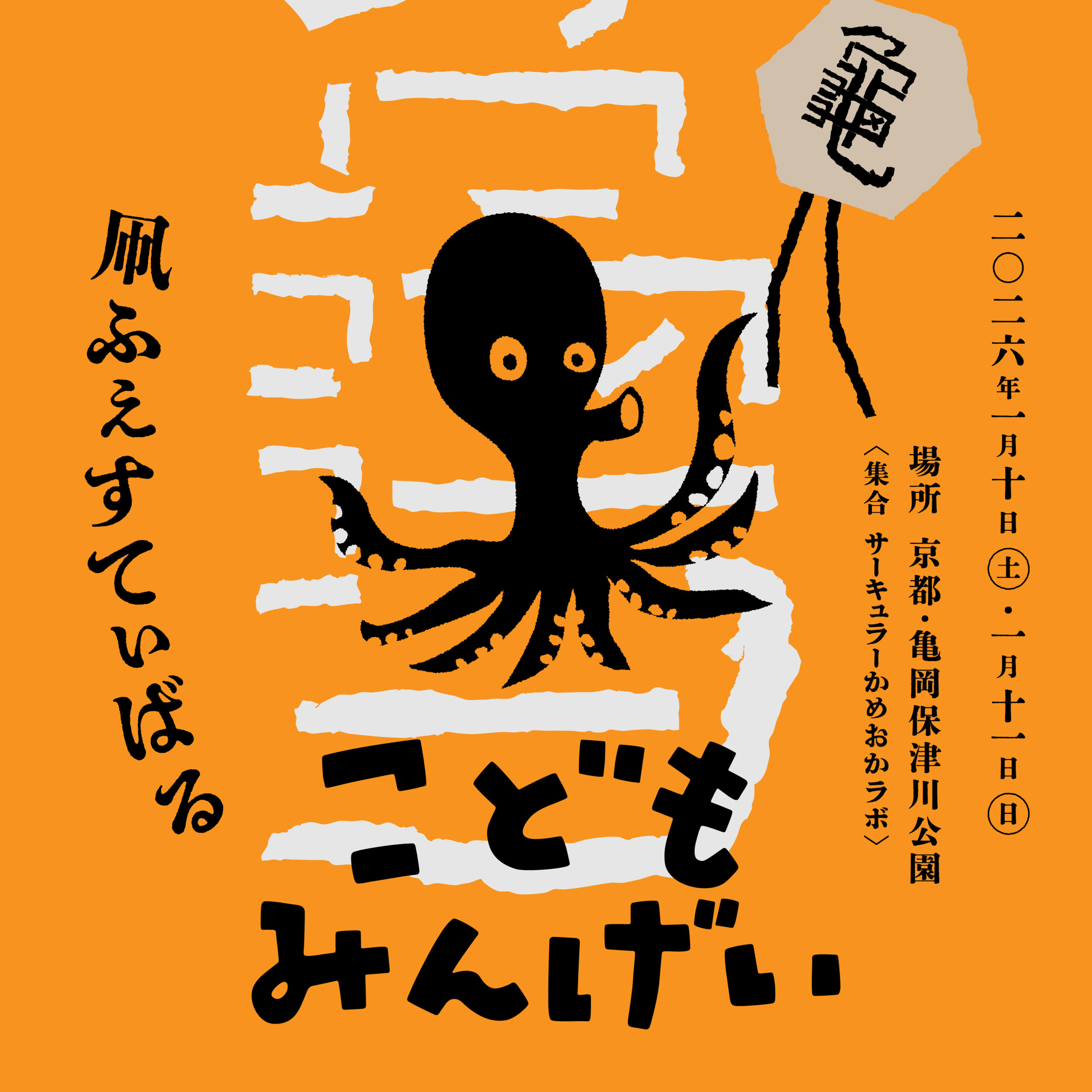 一緒に凧をつくるこどもたち(亀岡や京都、大阪、兵庫、近くに住んでいる人に限定します)を募集します(対象年齢:小学生)